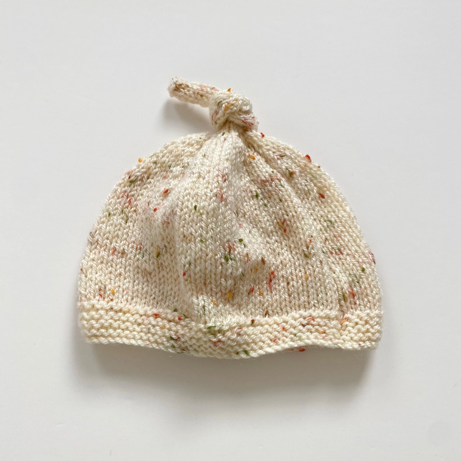 0-3 months cream speckle hand-knitted knot hat