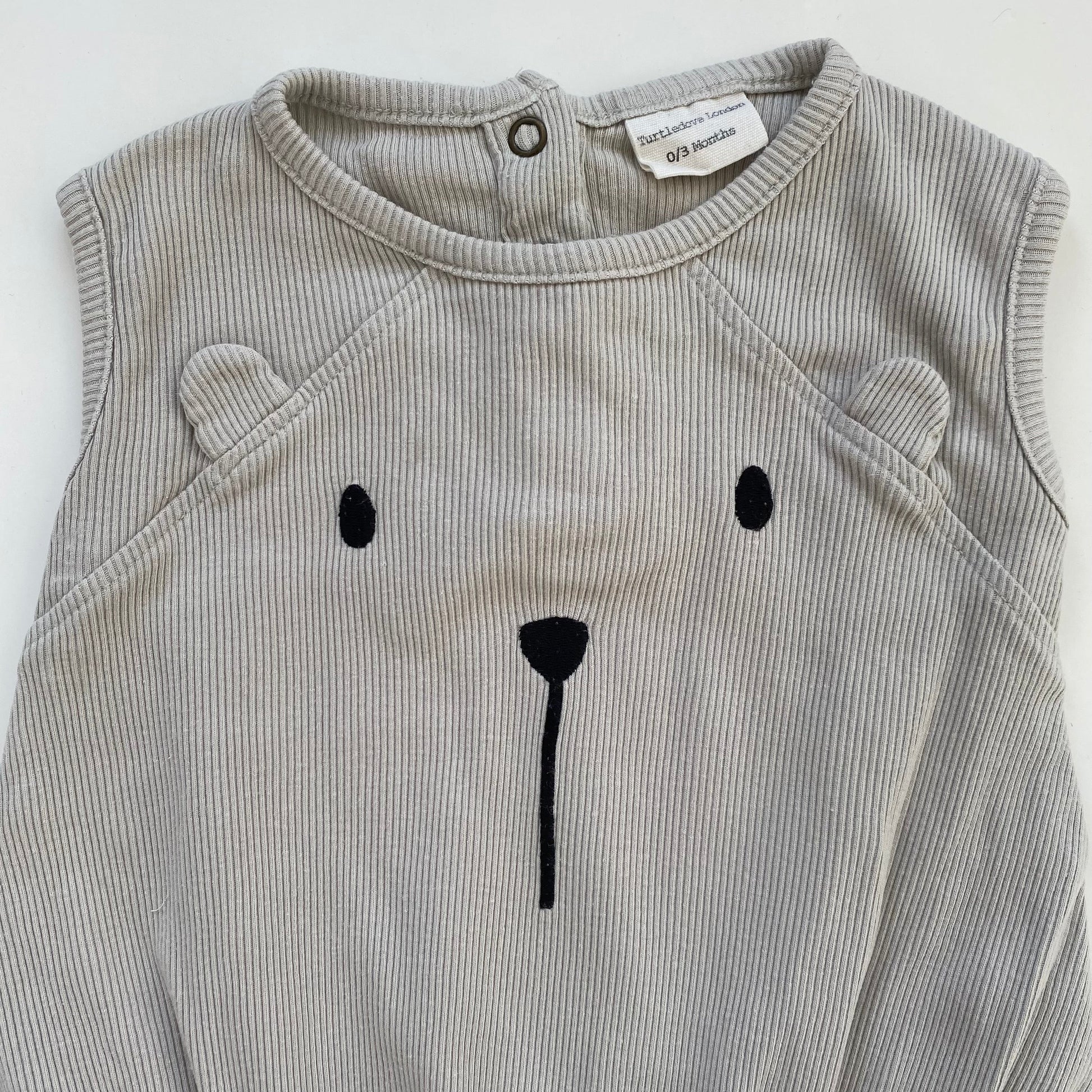 0-3 months TurtleDoveLondon ribbed grey bear face romper