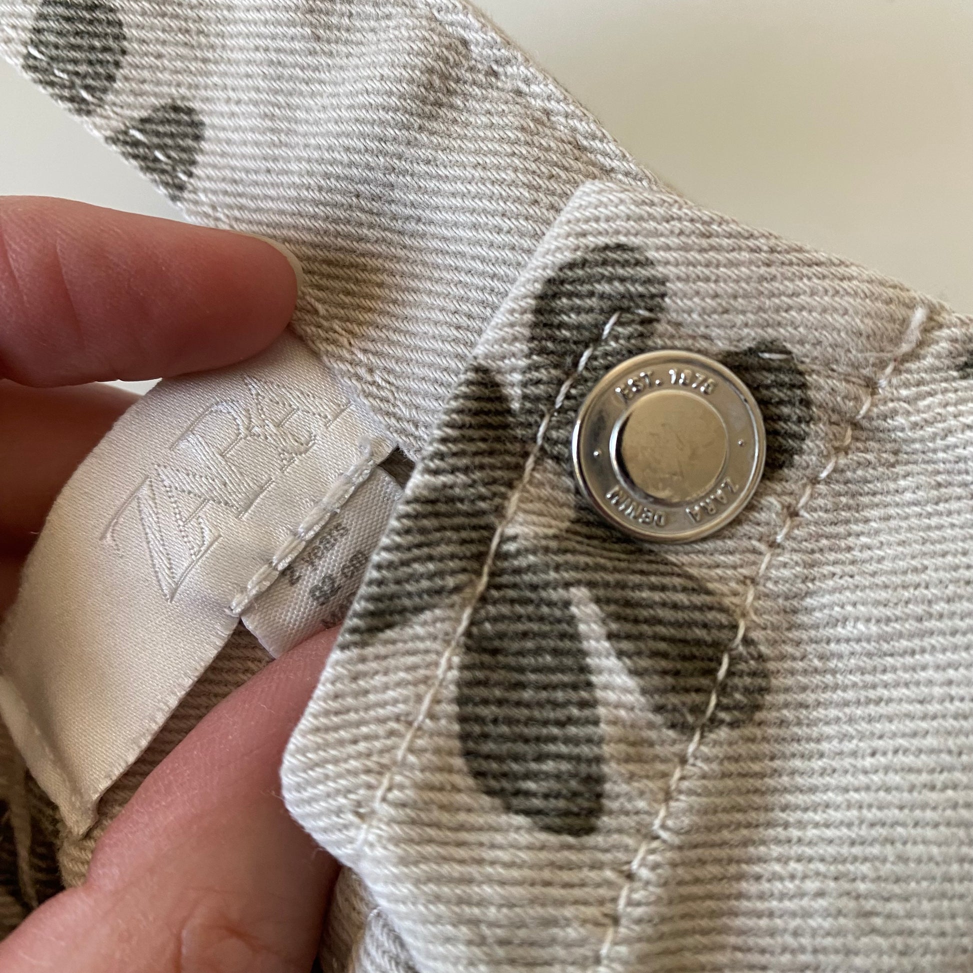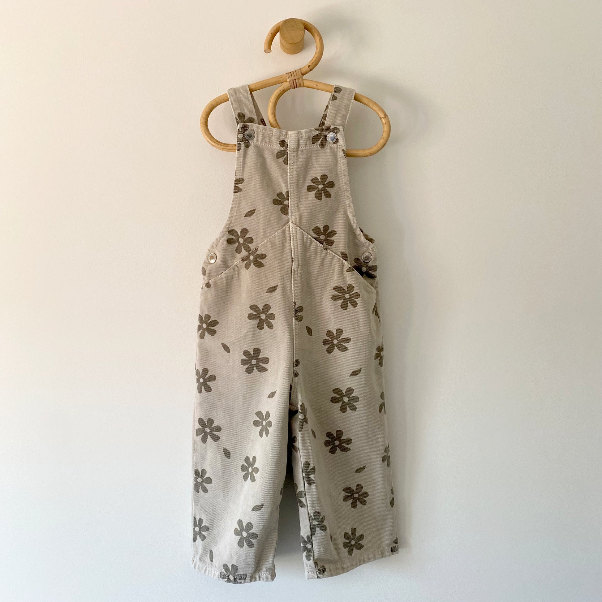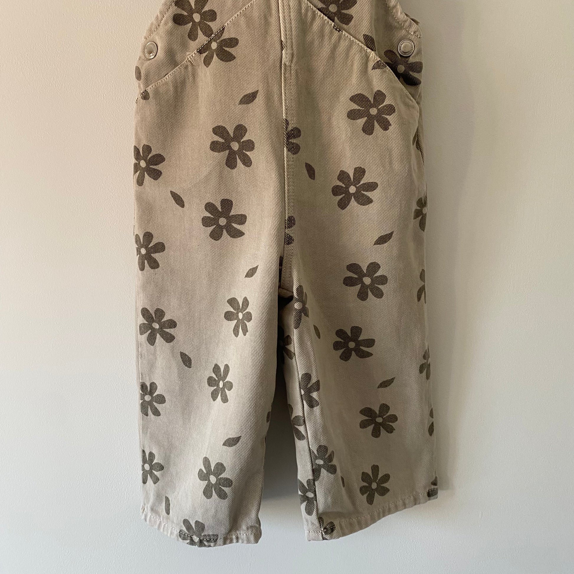 18-24M Zara beige khaki floral wide leg denim dungarees