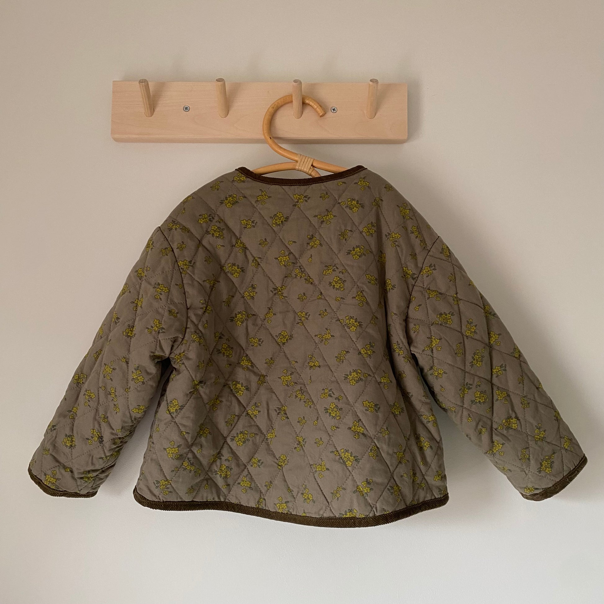 3-4 years Zara khaki ditsy floral quilted jacket with corduroy piping detail and fleece lining