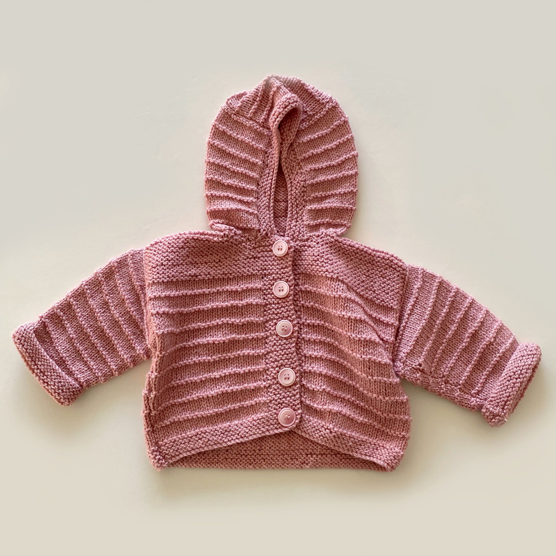 6-12 months dusky pink hand-knitted cardigan with hood - new