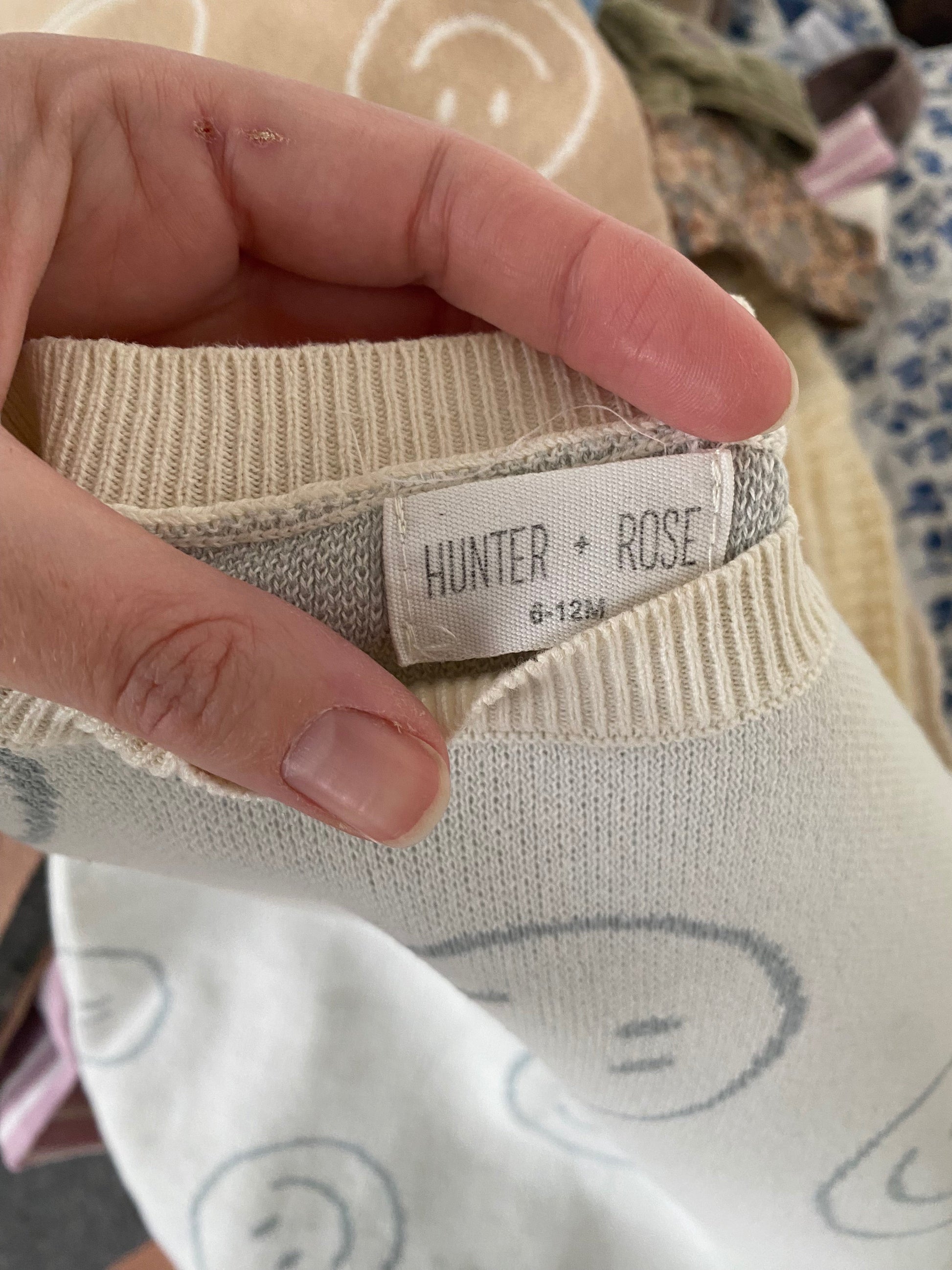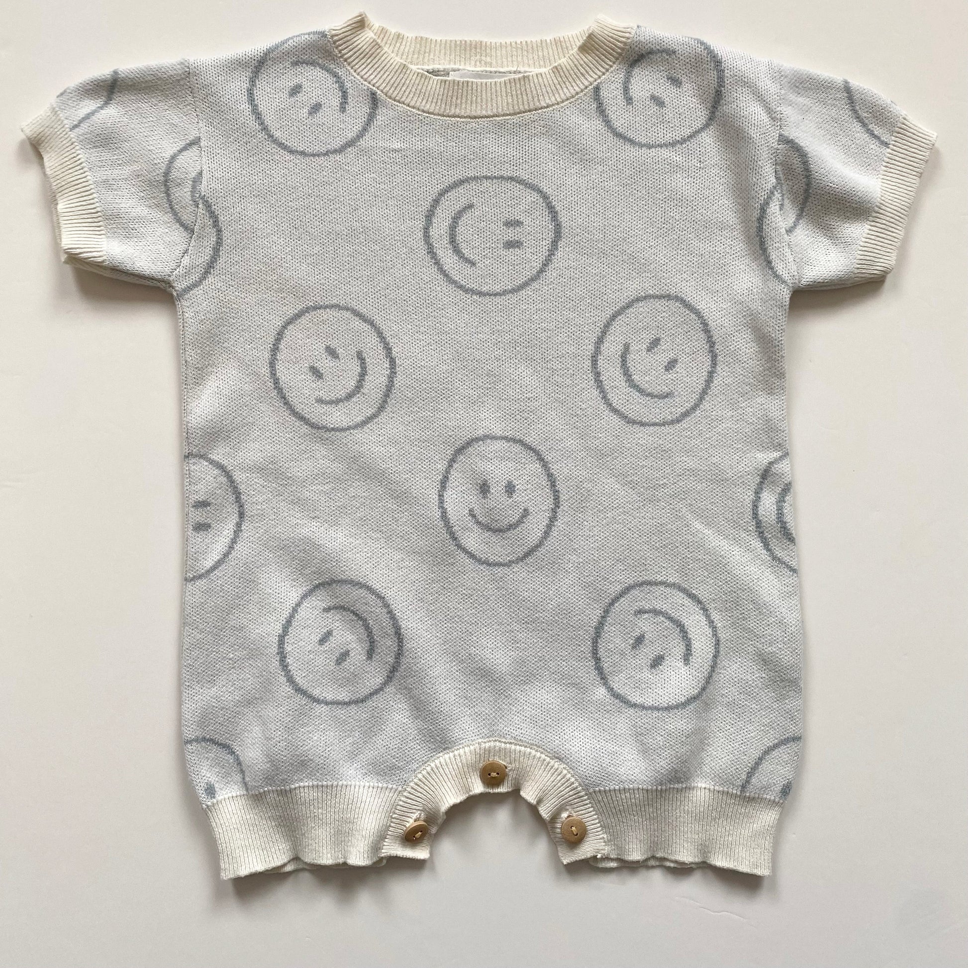 6-12 months Hunter + Rose cream smiley face knitted romper