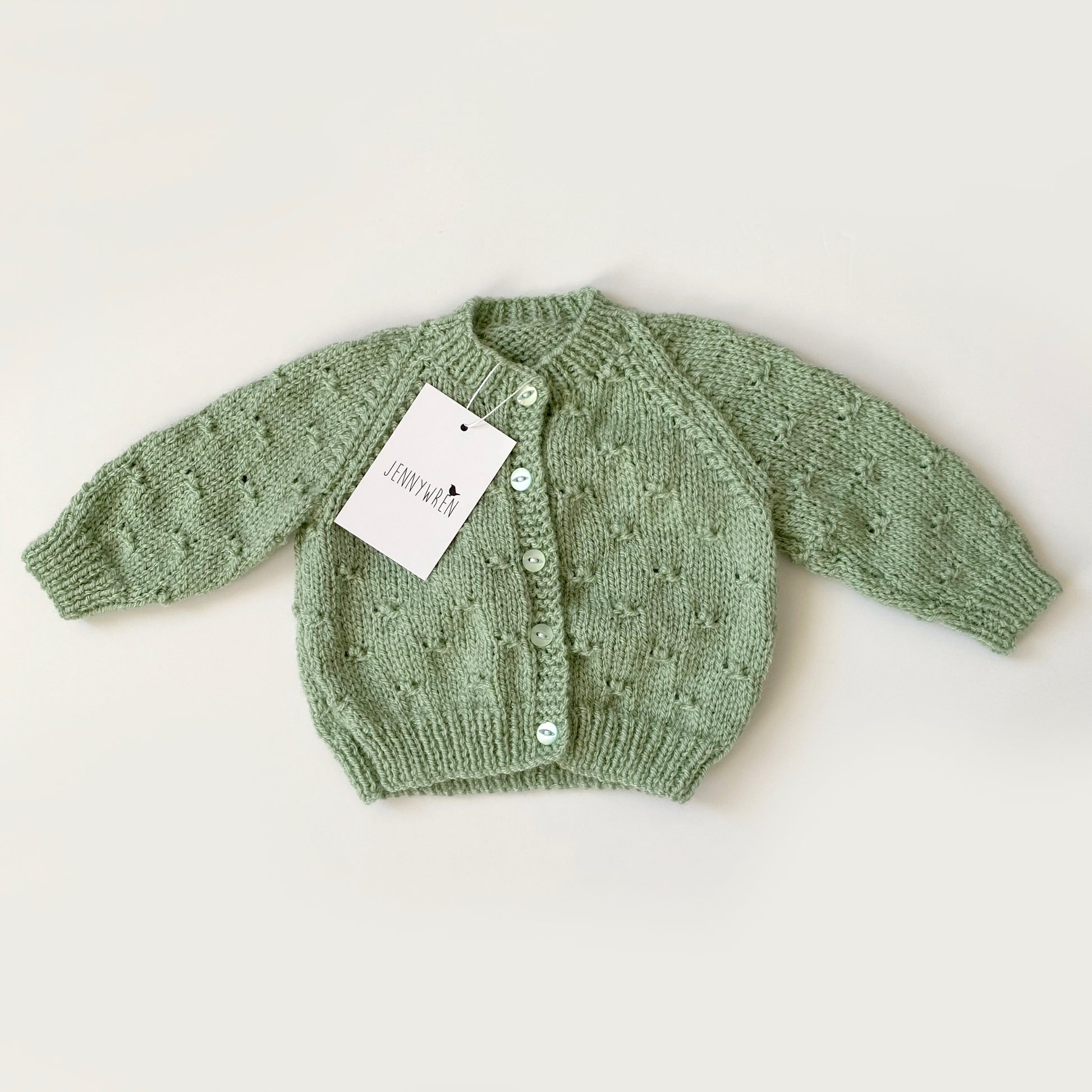 Mint green popcorn knitted baby cardigan or choice of other colours in the drop down menu